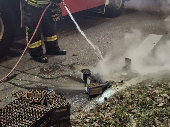 Gegen 0.50 Uhr brannte ein Müllcontainer in der Freiburger Straße nahe an einem Mehrfamiliengebäude. Auch hier konnte eine Ausdehnung noch rechtzeitig verhindert werden. Um 01.50 Uhr wiederum hatten Reste von Feuerwerksbatterien in der Erwin-Sick-Straße Feuer gefangen und mussten abgelöscht werden.