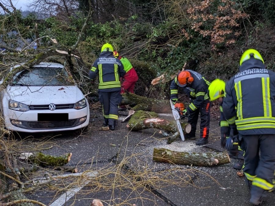 Am Samstagmorgen wurde die Abteilung Waldkirch gegen 7.00 Uhr zu einer technischen Hilfeleistung alarmiert. Ein Baum war im Tannenweg auf ein geparktes Auto gestürzt, ein weiterer Baum drohte ebenfalls umzustürzen. Die Bäume wurden durch die Abteilung Waldkirch zersägt und so weit beseitigt, damit die Straße für die Anlieger wieder passierbar war.